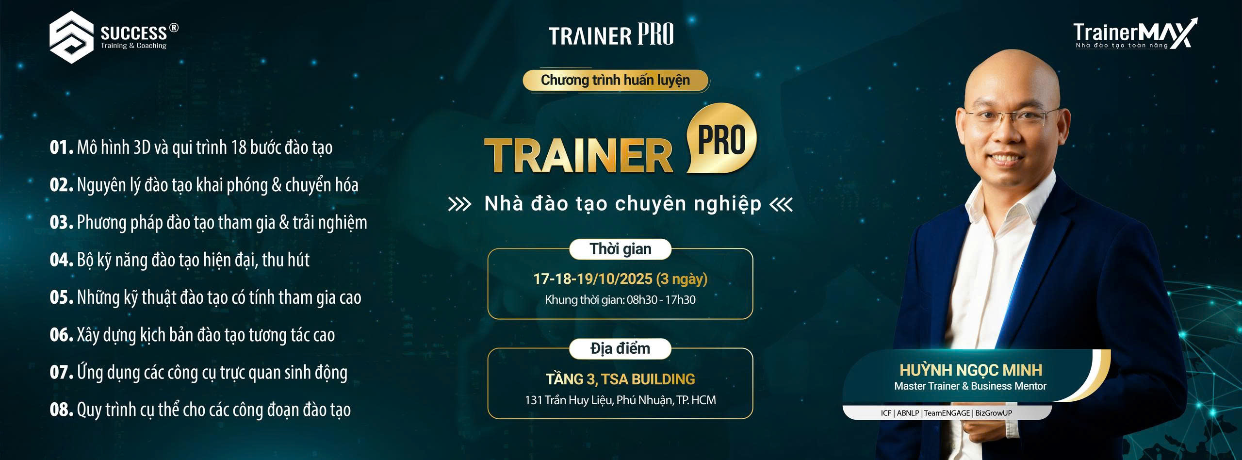 SUCCESS có ban chuyên gia đào tạo với nhiều năm kinh nghiệm ở đa lĩnh vực: Nghề Trainer, Đội ngũ, NLP, Leadership, Giọng nói…
