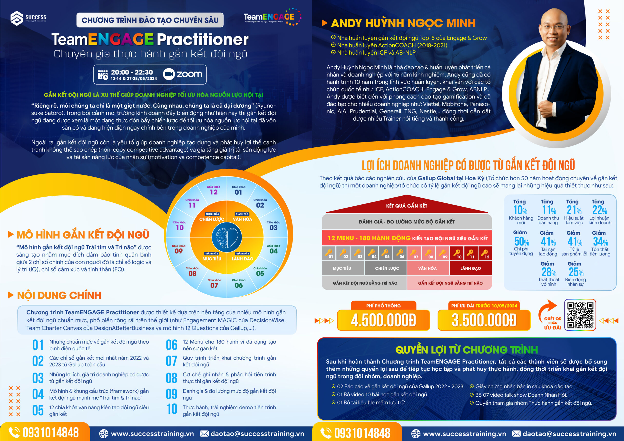 Chương trình hướng dẫn những kỹ năng, phương pháp và công cụ thực tế nhất để đo lường và triển khai gắn kết đội ngũ của bạn từ 4 tuần.