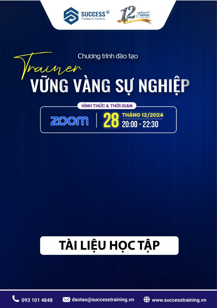 SUCCESS Training thân tặng Anh, Chị tài liệu Ebook: “Trainer Vững Vàng Sự Nghiệp”. Bên trong ebook là phần tài liệu slide bài giảng của chuyên gia Andy Huỳnh Ngọc Minh đã chia sẻ trong chương trình.