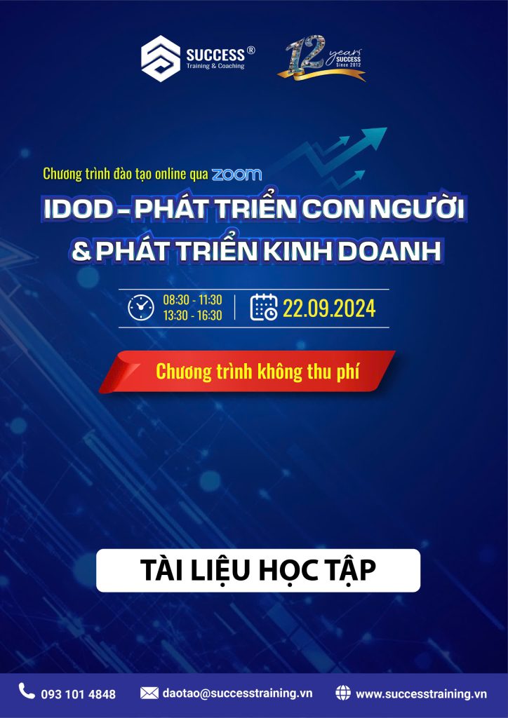 SUCCESS Training thân tặng Anh, Chị tài liệu Ebook: “IDOD – Phát Triển Con Người & Phát Triển Kinh Doanh”. Bên trong ebook là phần tài liệu slide bài giảng của chuyên gia Andy Huỳnh Ngọc Minh đã chia sẻ trong chương trình.