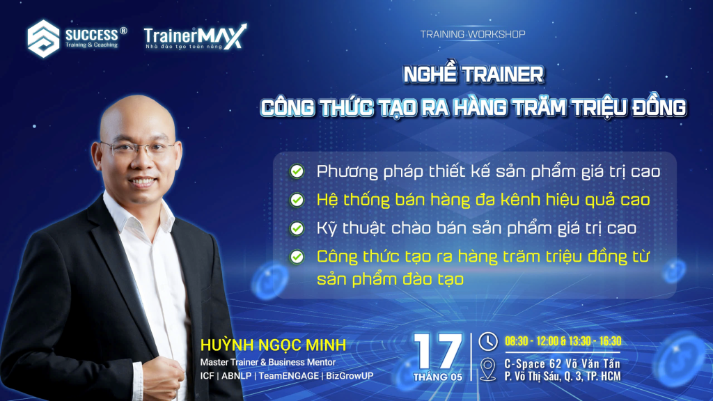 Chương trình đào tạo “Nghề Trainer – Công Thức Tạo Ra Hàng Trăm Triệu Đồng“ đã diễn ra vào ngày 17/05/2025 với 4 nội dung đặc sắc: